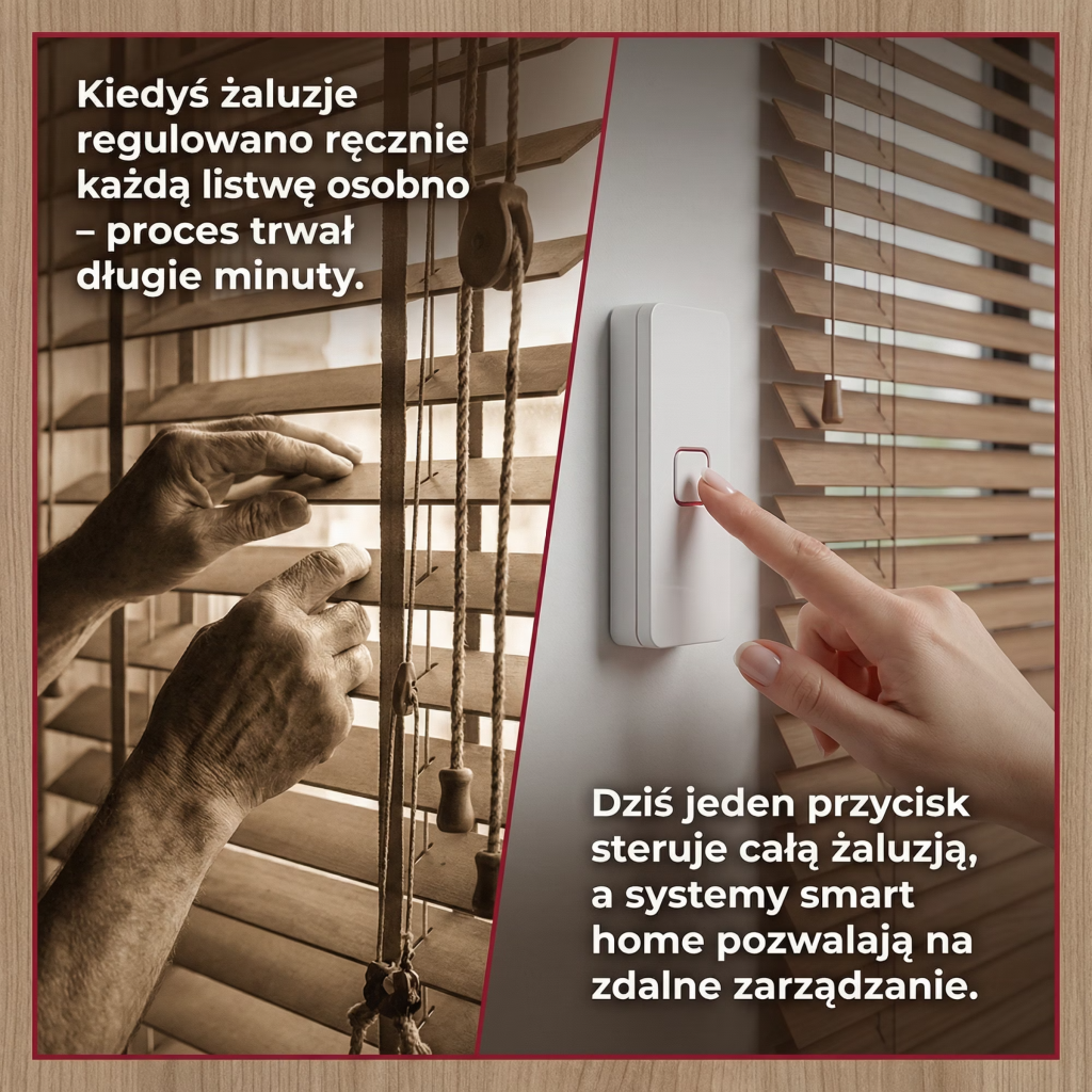 Dawne żaluzje drewniane nie wyglądały tak precyzyjnie jak dzisiejsze. Były bliżej drewnianych okiennic z luzem między listwami niż lekkich, równych lameli, które znamy teraz. Ich główne zadanie było proste: